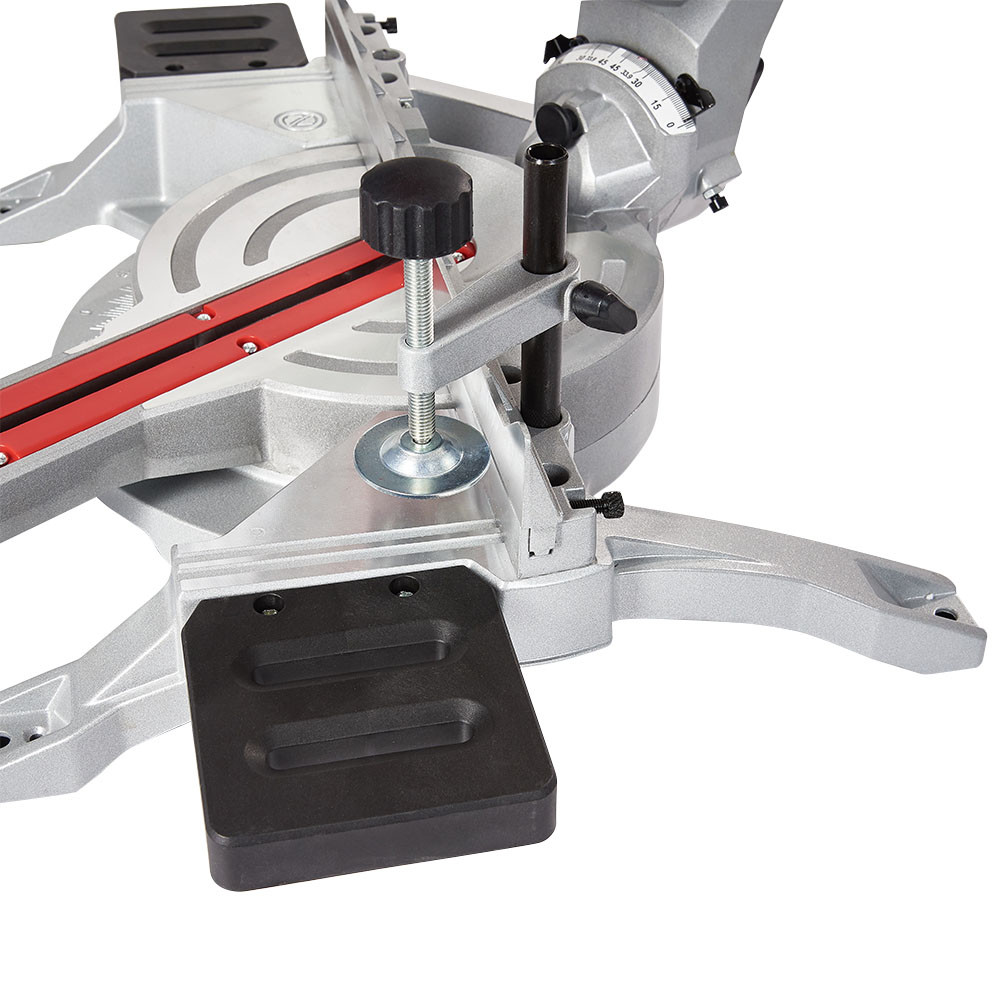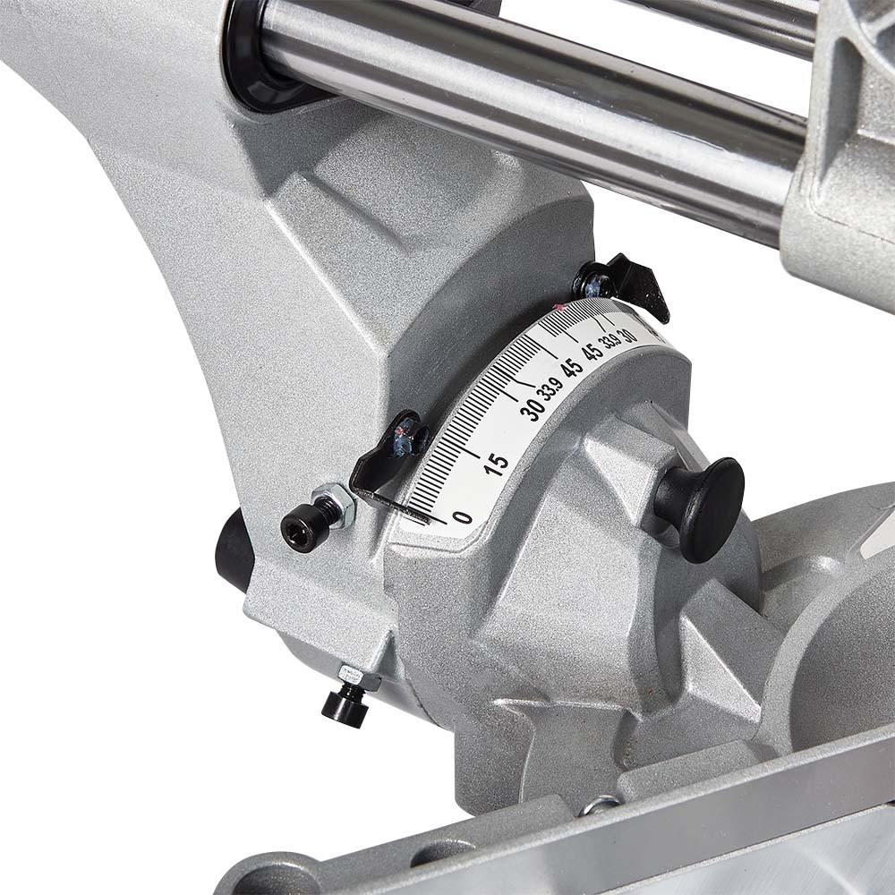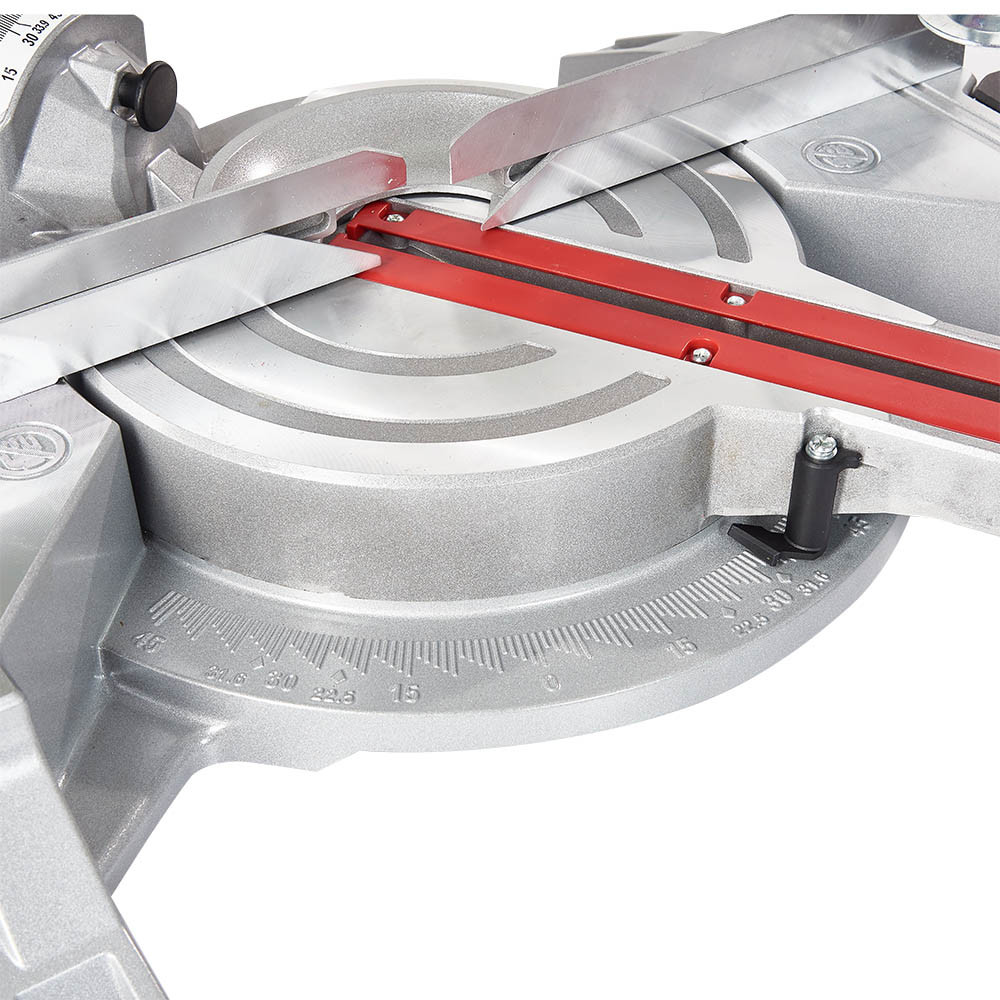 - Пила має функцію фіксованих положень для різання заготовок під різними кутами (-45°, -30°, -22,5°, -15°, 0°, +15°, +22,5°, +30°, +45°), що забезпечує швидке та точне налаштування.