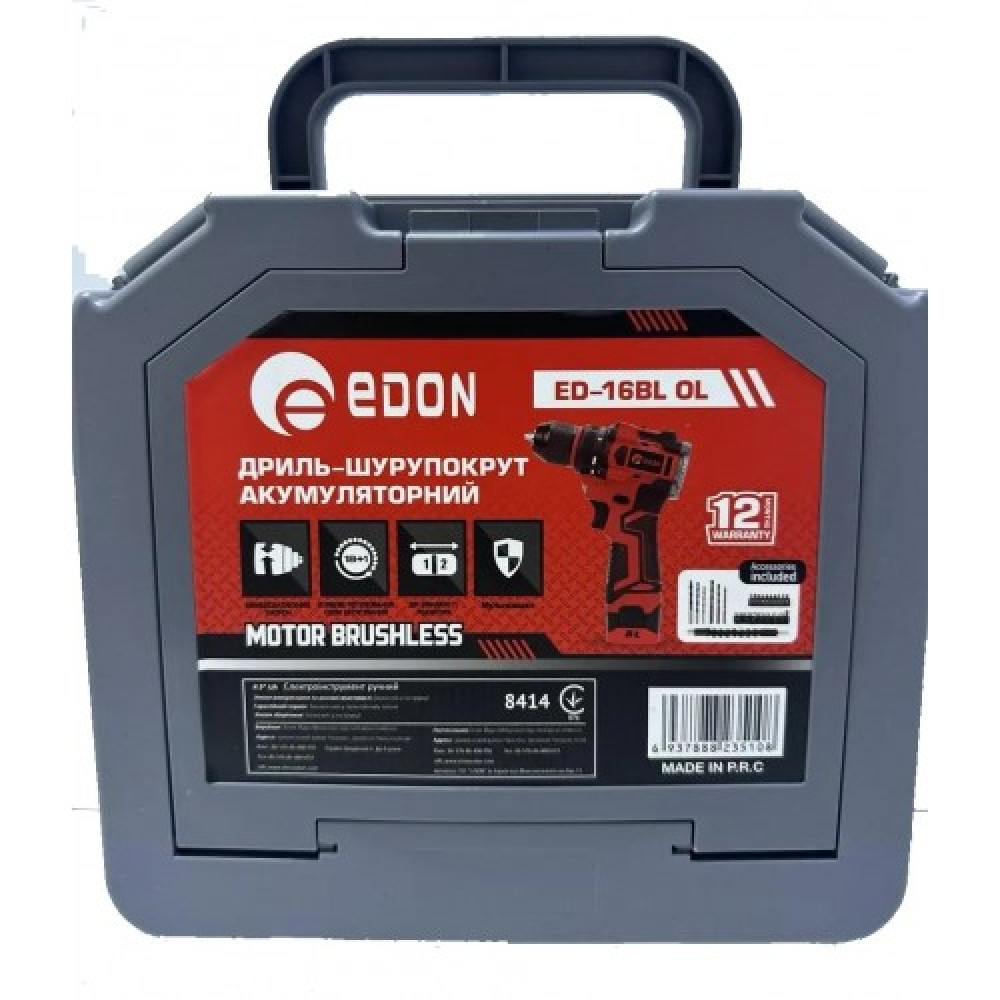 Шуруповерт акумуляторний безщітковий Edon ED-16BL OL 1450 об/хв 1.5 Ач Акумуляторний шуруповерт